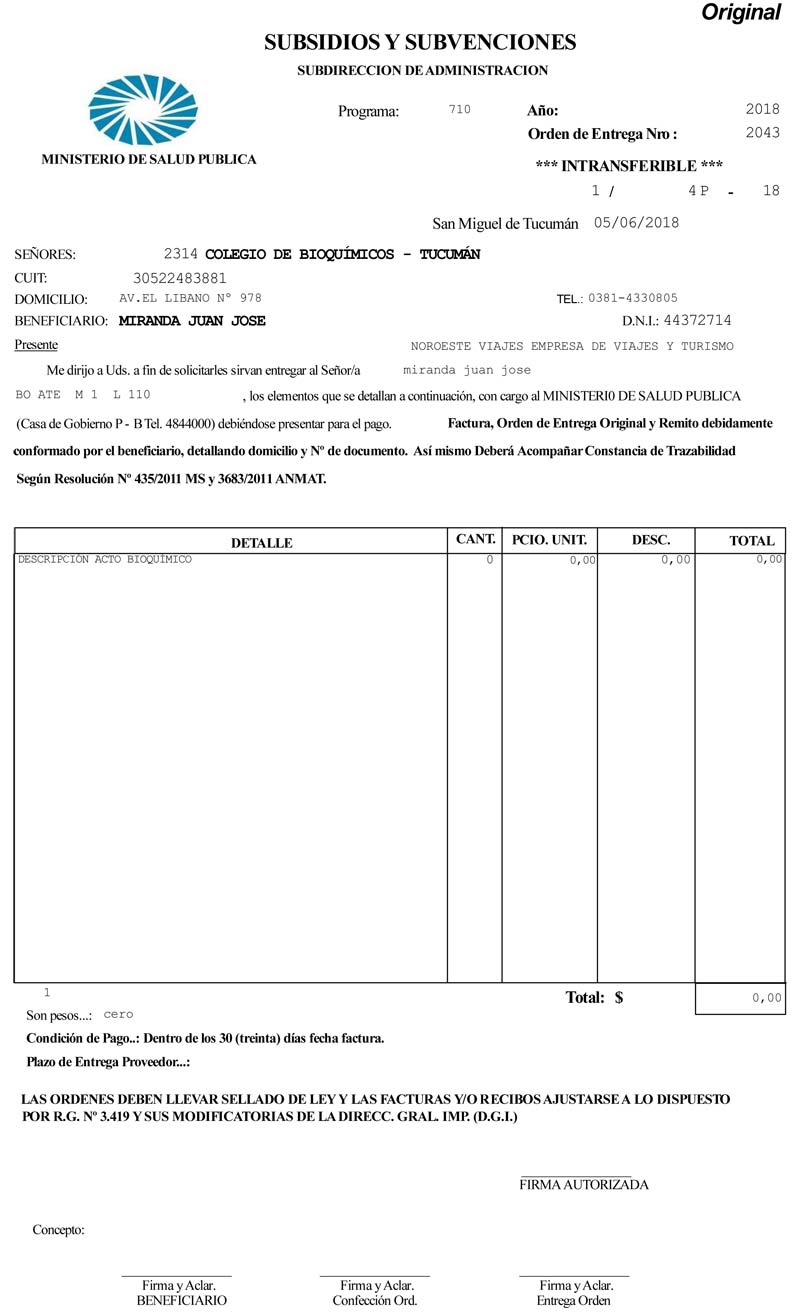 Para su atención, los Afiliados presentaran una “Orden de Entrega”, emitida por duplicado, según el modelo que abajo se transcribe.