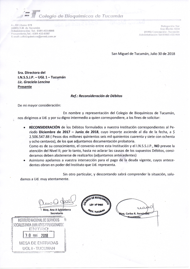 La Comisión Directiva mantiene su incansable postura de reclamar permanentemente los debitos realizados por la obra social. A continuacion les adjuntamos una copia de la ultima nota enviada y por la cual todavia estamos a la espera de una respuesta.