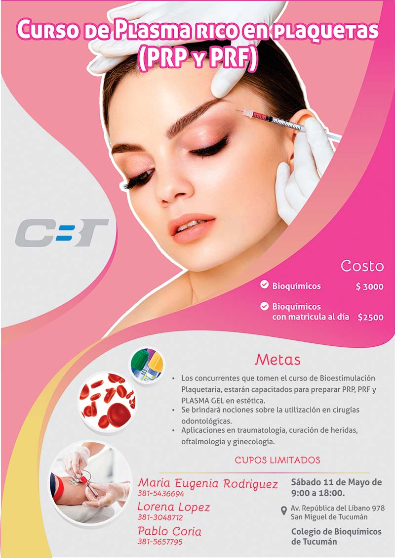 - PRP: Centrifugación, activación y obtención de concentrados plasmáticos utilizados en estética y armonización facial.