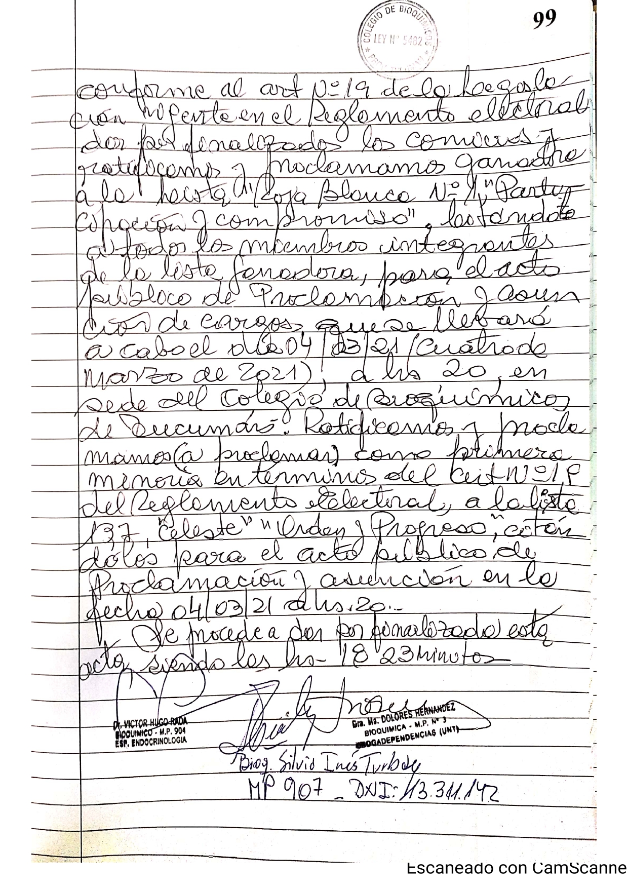 Estimados colegados, a continuación compartimos el acta de proclamación de autoridades de las elecciones 2021.