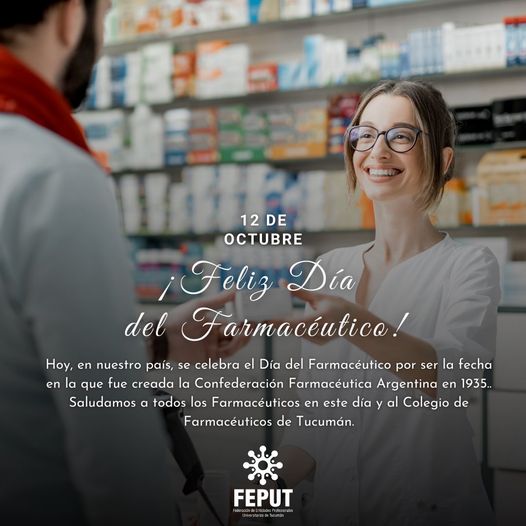 En nombre y representación del Colegio de Bioquímicos de Tucumán, tengo el agrado de dirigirme a Ud. para expresarle nuestras sinceras felicitaciones y augurios de prosperidad al celebrarse hoy, el “DIA NACIONAL DEL FARMACEUTICO ARGENTINO”.