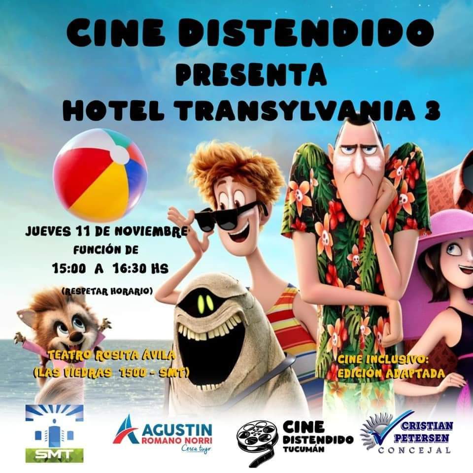 El Colegio de Bioquímicos de Tucumán, invita a participar de la película Hotel Transilvania 3, en el marco del Cine Distendido Inclusivo, edición adaptada, organizado por la Municipalidad de San Miguel de Tucumán. El mismo está dirigido a aquellos niños que presentan capacidades diferentes.