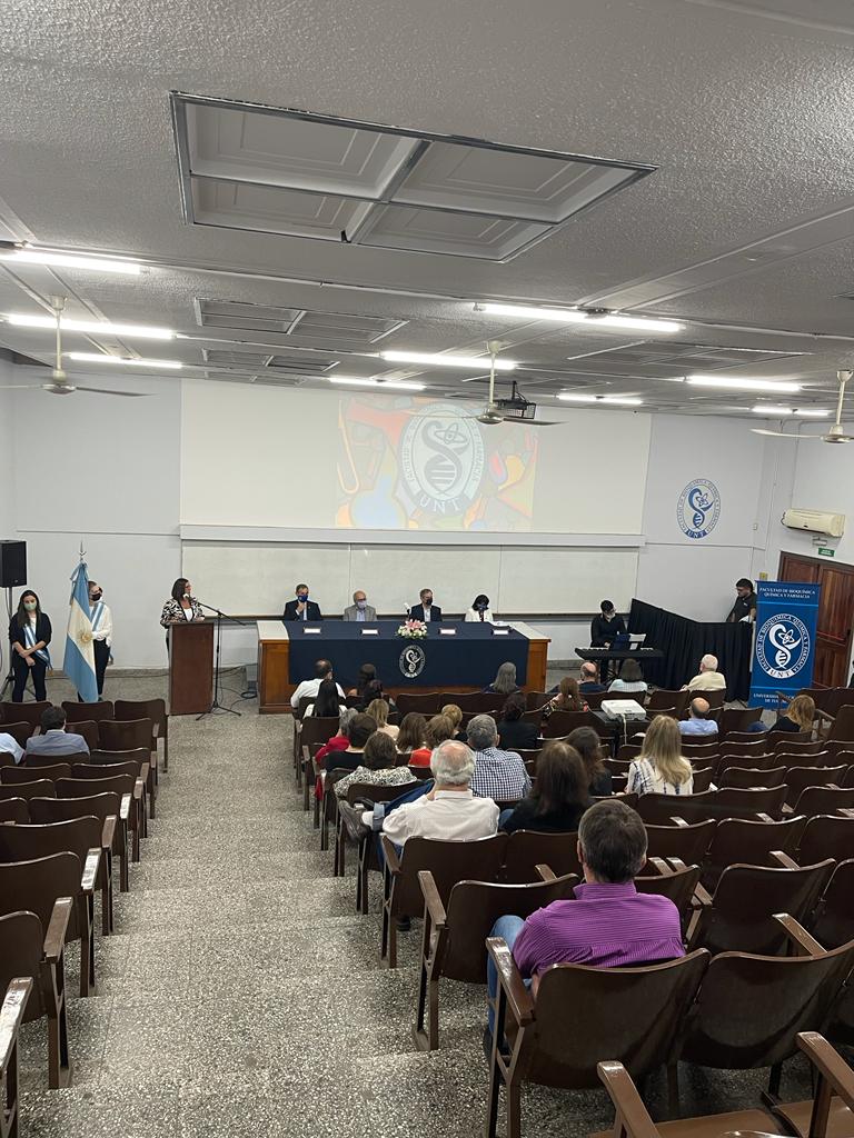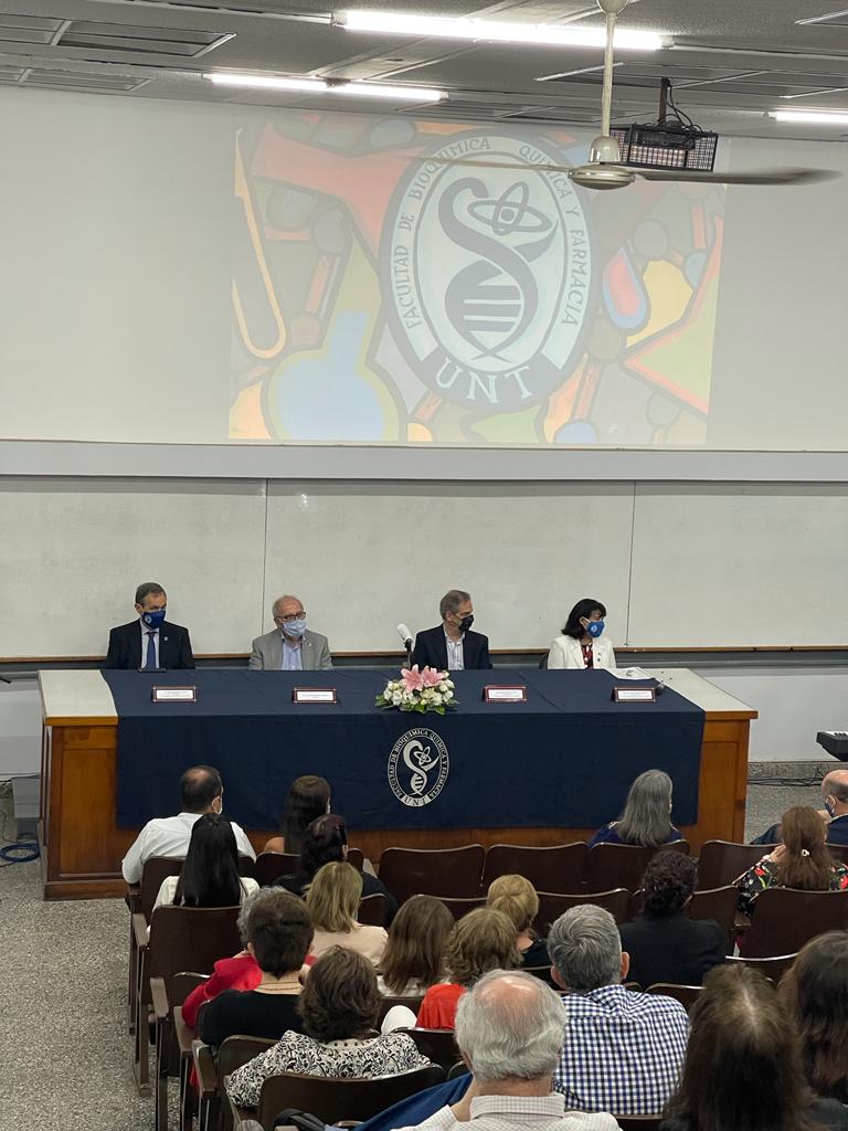 Autoridados del Colegio participaron en el homenaje al Dr. Legname. El dia 23 de Noviembre, en el Instituto de Química Biológica, perteneciente a la Facultad de Bioquímica, Química y Farmacia de la UNT, se llevó a cabo un acto de descubrimiento de una placa en homenaje al Dr. Arnaldo Héctor Legname, poniéndole su nombre al anfiteatro ubicado en calle Chacabuco 461. La iniciativa de otorgar el nombre al aula había sido aprobada por unanimidad por el Consejo Directivo de la dicha Unidad Académica.