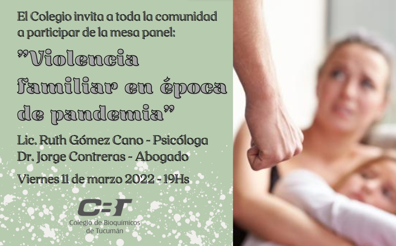 Estimados colegiados, desde el Colegio de Bioquímicos de Tucumán queremos invitarlos a participar de la mesa panel sobre «Violencia familiar en epoca de pandemia».