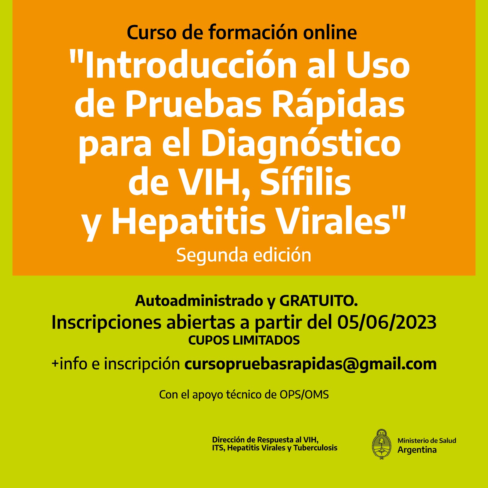 Hoy se abre la segunda edición del Curso Virtual de Pruebas Rápidas de VIH, síflis y Hepatitis Virales dirigido a equipos de salud e integrantes de las Organizaciones de la Sociedad Civil que trabajen en el diagnóstico de estas infecciones.