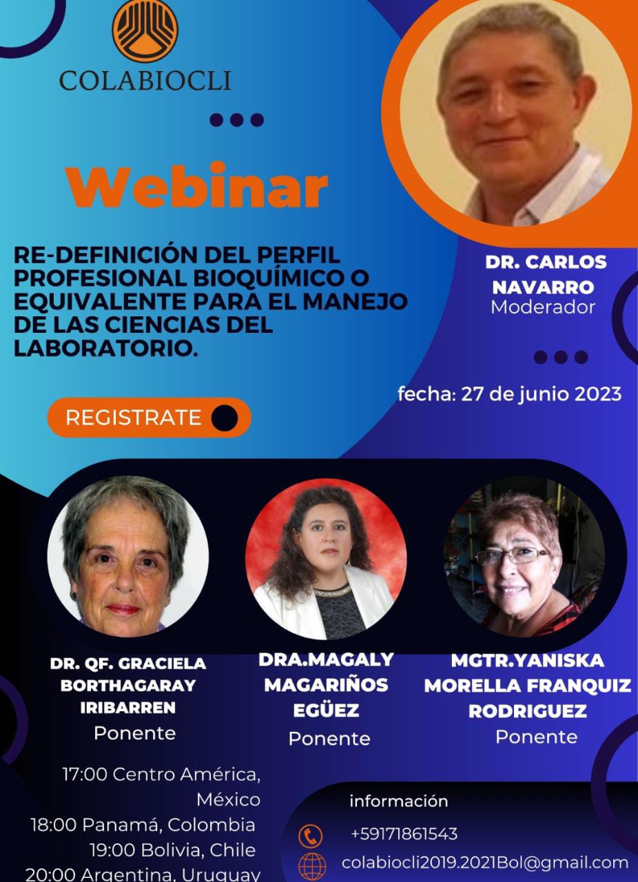 Estimados colegiados, invitamos a ustedes a participar del webinar organizado por la COLABIOCLI.
