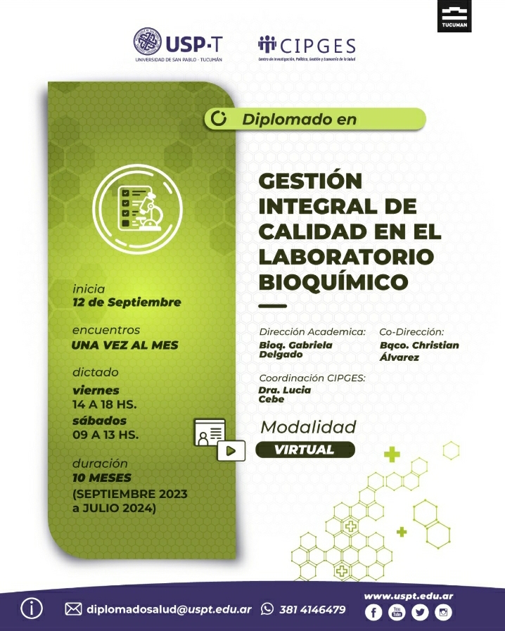 Estimados colegiados, invitamos a ustedes a participar del diplomado en «Gestión integral de calidad en el laboratorio bioquímico».