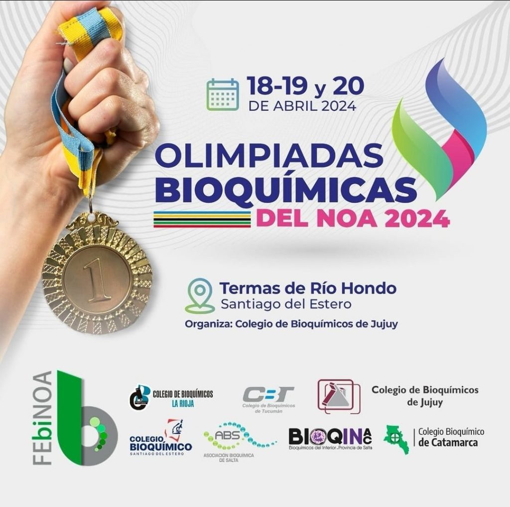 Las Olimpiadas Bioquímicas del NOA se llevarán a cabo los días 18, 19 y 20 abril, en la Ciudad de Termas de Rio Hondo. La organización estará a cargo de la provincia de Jujuy.