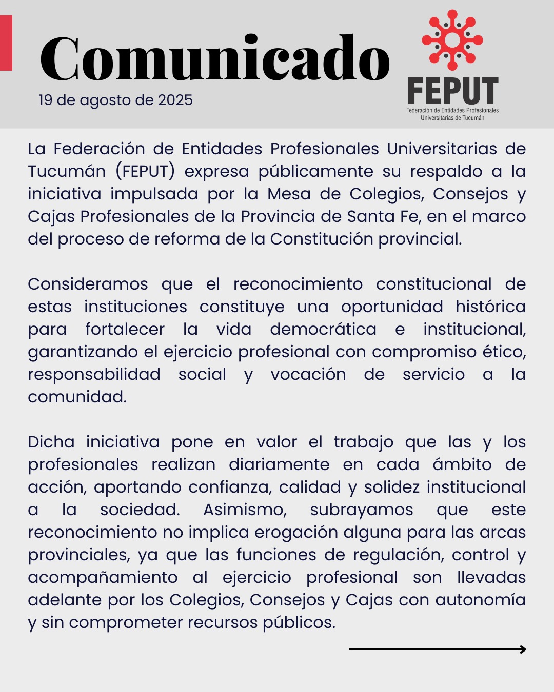 Estimados colegas, les hacemos llegar el comunicado de FEPUT sobre la reforma de la constitucion de la provincia de Santa Fé.