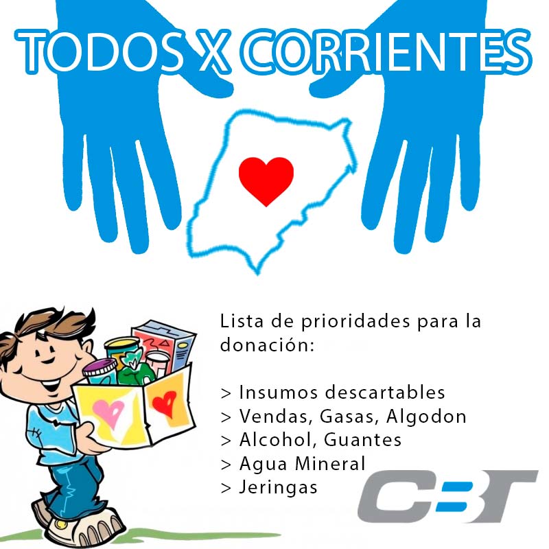 Estimados Colegas, el Colegio de Bioquímicos de Tucumán, convoca a todos los Colegiados y a quienes deseen colaborar a la campaña solidaria por Corrientes. Como es de público conocimiento, la situación por la que atraviesa nuestra provincia hermana en estos momentos es muy grave, y desde nuestro lugar deseamos hacer nuestro aporte.