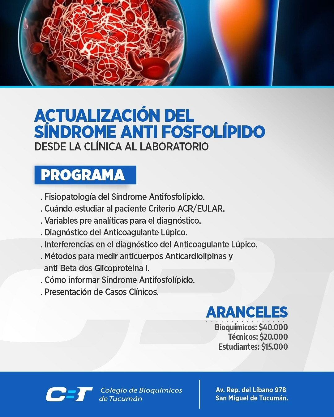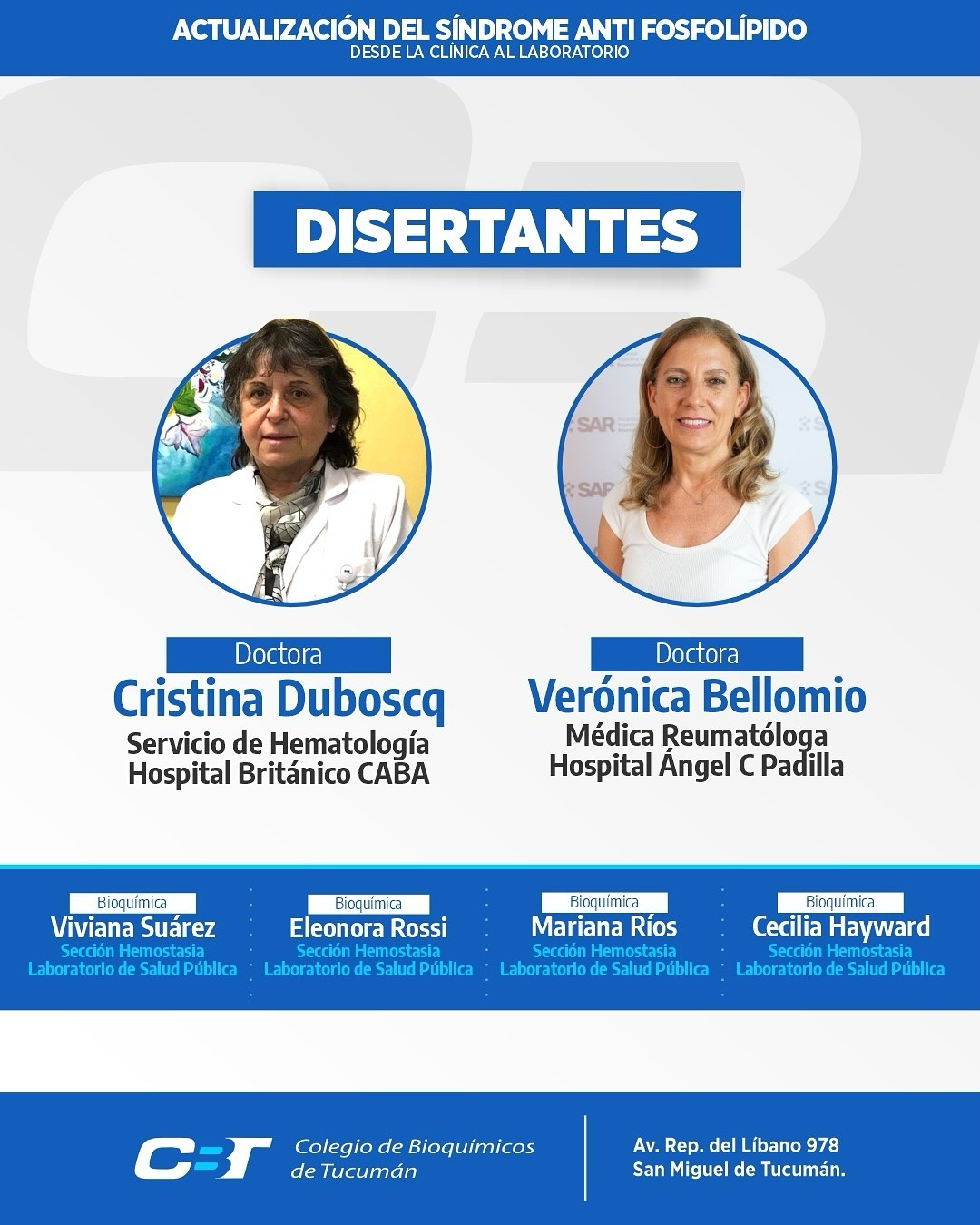 Lugar: Colegio de Bioquímicos de Tucumán – Av. Rep. del Líbano 978, San Miguel de Tucumán